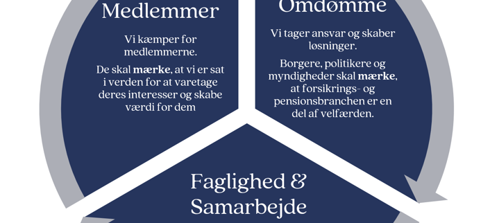 Adfærdsværdierne sætter retning den adfærd, der skal bygge bro fra vores strategi til den konkrete dagligdag, hvor vi står overfor et medlem, en interessent eller en kollega.